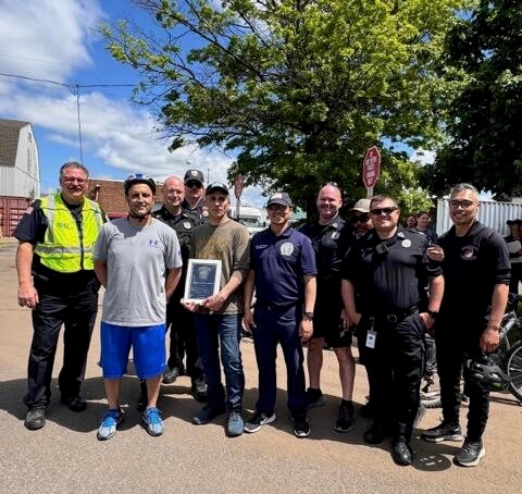 This year, as a token of our appreciation, the Bergenfield Police Department presented a plaque to Christopher Tierno of Urban Cycle Outfitters for generously donating his time and expertise in assisting riders with bicycle maintenance.