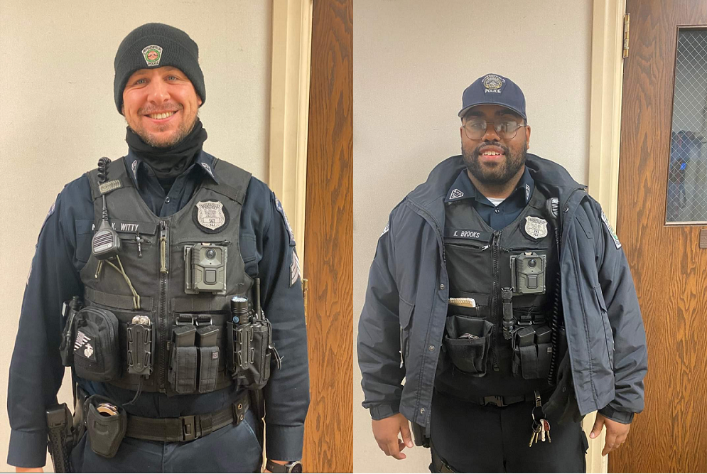 Below are pictures of Sgt. Witty and Officer Brooks wearing the WatchGuard V300 cameras showing their mounting locations.